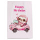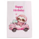 Lekande Rosa Sloth som kör en konvertibel födelsed