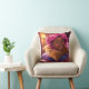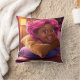 Den berömvärda 3D-kudden med en stiliserad tecknad med varm brun hud och pulserande rosa hår, fångad i ett glatt leende under bra. En charmig och unik dekorativ accent.