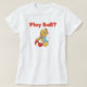 En gullig hund leker med en boll, och röd text läser "lekboll?", på hund tröja, bodysuits, muggar, kort, klistermärkear, valphundtote bags och mycket mer.