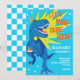 Lekfull blå dinosaurie födelsedag inbjudningar