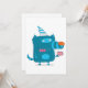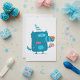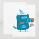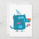 Lekfull blå seriefigur-monster med festhatt inbjudningar