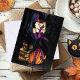 Sittande på toppen av en pumpa i en skuggig skog, blandar denna stiliga blonda häxa charm, mystik och en touch av bus. Klädd i en djärv svart och lila ensemble med randiga strumpor och eleganta handskar utstrålar hon självförtroende och magisk allure. En trave urgamla trolldomsböcker vilar bredvid henne, medan en vaksam svart katt lurar i bakgrunden och bidrar till den förtrollade atmosfären.