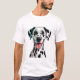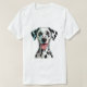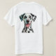 Ljus Dalmatiner-figur står på en mjuk rosa bakgrund med ett glatt uttryck. Ljus, vänlig och engagerande, den fungerar bra för barnböcker, husdjursvarumärken, annonser och lekfulla kampanjer.