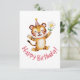 Lekfull födelsedagsdesign med tiger och tusensköno tack kort