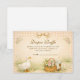 En charmig saga-inspirerad babyshower-design med en söt akvarellgås som står bredvid en rede fylld med pastella eggs. Ömtåliga vårblommor och mjuk grönska skapar en lugn landsbygdsscen, medan en rosafärgad rosett och en salvia-rutig bakgrund tillför en mysig cottagecore-känsla. Den vintage-inspirerade illustrationsstilen och den mjuka pastellfärgspaletten ger designen en fantasifull nurseriesk känsla, perfekt för en lekfull och hjärtlig babyfirande.