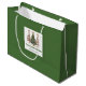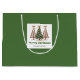 Minimalistisk vattenfärg julgran presentpåse med lekfullt leopardmönster i jordnära grönt och guld. Personalisera med ditt eget namn för en stilren julpresentpresentation.