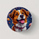 En glad serieteckning-hund med en glädjefull min; omgiven av en stjärnfylld, färgrik bakgrund. Konsten utstrålar glädje och energi, vilket gör den idealisk för teman av glädje och lekfullhet.