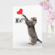 Grått tabby katt med röd hjärtballong i 100 år på vit bakgrund. Bakgrunden till färg kan ändras