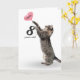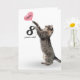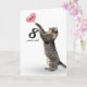 Grå tabbykatt med rosa ballong för 8-årsdag på vit bakgrund. Bakgrundsfärgen kan ändras