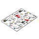,Ett lekfullt, tecknad-stil mönster med bussar, bilar, helikoptrar, trafikljus, byggnader och rolig doodle-text som “Beep Beep,” “Wuz Up?” och “Kör,” i ljusa röda, gula, blå och svarta toner.