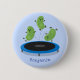 Leksa roliga grönt bönor på tecknad av spårvagn knapp