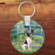Lily Pond Bridge av Claude Monet, anpassad för att inkludera en Leksak Fox Terrier. Med olika nyanser av grönt och blått är den här scenen en av Monets mest populära målningar.