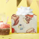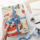 Vintage, Helgdag papper med Jultomten, leksak flygplan, dockor, trummor, leksak häst, polkagrisar och renar.
