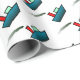 Lite ror fartyg i diagonal. På en vitbakgrund.
