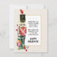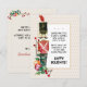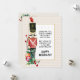 Akvarelldesign med en nostalgisk leksoldat iförd röd uniform och hög svart hatt med röd fjäder som står bland några randiga julgransprydnader och vintergrönt med röda bär. Ursprunglig dikt på framsidan är redigerbar - gör den till din egen! Texten lyder "Julleksaker och livliga lekar är roliga sätt att leka, men jag vet att min största glädje är du denna juldag. God Jul!" Baksidan av kortet har prydnader och grönt i hörnen och utrymme för att skriva in ditt personliga meddelande och underteckna ditt namn.