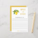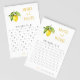 Gör möhippan oförglömlig med roligt och sentimentalt Lemon Advice och Önskemål Möhippa Game. Det här spelet är en perfekt som är lämplig för soligt, citrusinspirerat firande och har ett sunt citrusinspirerat format med gult, lush grönt löv och elegant. Gästerna kan sina bästa råd och sitt hjärtliga önskemål för briden att vara på vackert designade kort, och skapa en keepsaké som hon kommer att uppskatta för evigt. Korten trycks på en högkvalitativ, stabil kardstock för att lätt kunna skriva och bevara minnen. Det här spelet lägger till ett sött och interaktivt inslag i duschen, vilket uppmuntrar till skratt, kärlek och meningsfulla ögonblick. Perfekt för trädgård party, sommarduschar eller Medelhavstäckande evenemang, är både tankfull och underhållande!"