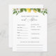 Kort för babyduschråd och förutsägelser med vattenfärgade citroner och grönska. Ett roligt sätt att interagera med gäster under barnduschen. Matchar vintagens citronsamling i Adore Papper Co Zazzle Shop.