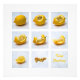 Kollage av åtta fotografier av en citron som äts bita genom bita till fröna. Föreställ er att ansikte under detta livsuppehållande förfarande. Behålla leende!