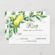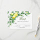 Den här soliga blommigtens OSA kort är designad att samordna med vår samling i Lemon Blommar Grey bröllop och har en spray av citroner och vit blommar i gult som täcker det önskade svarsdatumet och anpassningsbarnas godkännande och tillbakagång. Anpassa med måltider eller ange val under.