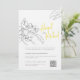 Modern enkel skisserad bröllopsinbjudan från teckning i grått på vitt med en kopp Perfekt av citrongult för en enkel modern citrusblommar bröllop. Anpassa utformningen av den här blommarnas bröllopsinbjudan med dina egna uppgifter om namn och bröllop, QR-kod för svar- eller presentregister och ditt par-foto på motsatt sida. Andra matchande artiklar tillgängliga. Blommar botanical teckning hand art by Sarah Trett for www.mylittleedenweddings.com