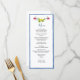 Elegant Amalfi-tema menykort med handmålade frukter och blommor vanliga i Medelhavets trädgårdar med blå kant. Perfekt för italienskt destinationsbröllop
