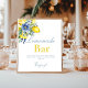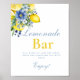 Lemon Blue Blommigt Citrus Lemonade Pub-skylt! Det här vackert designade tecknet har klara citroner i gulten, mjuka blommigtar och elegant-skript - perfekt för möhippor, babyduschar, brunches eller sommartid i party.