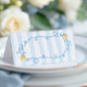 Lägg till en charmerande detalj i din inställning för bord med den här eleganten på platskortet med vattenfärgade citroner, mjuka blå bögar och klassiskt blått och vitt rand. Perfekt för sittplatser, livsmedelsmärkning eller bord vid en Medelhavsindikerad babydusch.