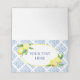 Använd detta vackra Lemon Blue Tile italienska vikbara kort för ditt evenemang som matställen, platskort, aktivitetsställen och mer. Med en Positano tuscan stil är detta perfekt för alla vår- eller sommarevenemang.