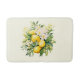 A bath mat with a lovely illustration of a bouquet of lemons surrounded by white blossoms leaves and sprigs.