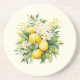 Sandstone coaster with a lovely illustration of a bouquet of lemons surrounded by white blossoms leaves and sprigs.