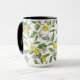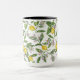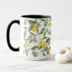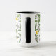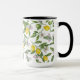 Lemon branches with blossoms and fruit on white mugg