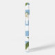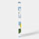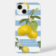 "Citrus Blommigt Dusty Blue White Stripe Löv Foliage Greenery iPhone 12 Fodral." Detta enkla, färska, moderna stil-verk har målats i oljepastellerna av den internationellt licensierade konstnären och designern Audrey Jeanne Roberts. Fet blått och vitt vitt rand är parat med ditt namn, monogram eller meddelande, citrusfrukter, blommar och löv grönt. Upphovsrätt.