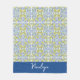 Lemon Citrus Blue Mediterranean Tile Pattern Fleecefilt