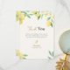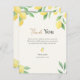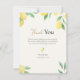 Elegant wedding thank you card featuring watercolor lemons and greenery framing a warm ivory background with a heartfelt message, your names, and wedding date. The back showcases your photo framed by matching lemons and a brush‑stroke initials area, perfect for sharing a favorite wedding or engagement picture with guests. Easily customize the text and upload your own photo to coordinate with your citrus or Italian‑inspired wedding invitation suite.