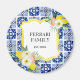 Lysa upp ditt utrymme med denna lemon citrus-magnet! Med ett mönster av medelhavsplattor i marinblått och en blomsterbukett