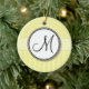 Lemon Cream Damask med Rand och Monogram Julgransprydnad Keramik
