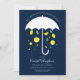 Ett inbjudningskort för möhippan med ett vitt paraply med en dusch citroner och grönt löv som faller ner inifrån. I inbjudan visas illustrationen och den vita texten på en mörk blått bakgrund. Den här inbjudan har en elegant och en känsla av att du kan göra möhippan till en händelse att komma ihåg. Lägg bara till din information, lägg till den här inbjudan i din kundvagn och njut av firande.