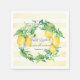 "Lemon Grey WAN White Blommigt Möhippa Luncheon Napkins", " vattenfärgsvit och blek citron i gulten rand kombineras med citroner, citrus löv grey och blommiga blommar i en bladkrans för en modern utformning. Typografi, skriptkalligrafiktext står, "Möhippa Luncheon", och sedan är det enkelt för dig att byta ut fält för bridens namn och duschdatum (eller bröllop). Copyright, Audrey Jeanne Roberts, alla höger förbehållna.