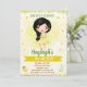 Lemonfödelsedagsinbjudan till flicka. Lemonade party inbjudan. Cute-inbjudan till din lilla älskings födelsedagsfest med gult citroner, lemonade och brunettflicka med mörk hår. Du kan helt enkelt redigera den här användan på menyn Anpassa för att göra den speciell.
