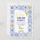 Vår roliga, djärva, italiensk-mediterranska inspirerade blåa keramiska plattmönster i kombination med glada, handmålade gula gröna akvarellcitroner skapar en fräsch och modern fotograduationsfestinbjudan som säkert kommer att imponera! Med en modern mosaikram och elegant penselskrift. Imponera dina gäster med denna trendiga och unika design som kommer att få alla att prata! Lägg till ditt foto på baksidan.