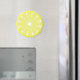 En stark gult citronskiva dekorerar den här söta magneten. Designen kommer från originalteckningen.