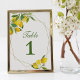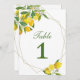 Detta tvåsidiga kort för bordsnummer har en vattenfärgscitronmotiv som accentueras av ett geometriskt ram och en slitande grönt. En underbar design för ditt citrontematevenemang. Den är gjord av sturdy cardstock, så den kan användas på ett stativ eller i ram.