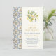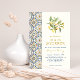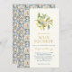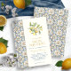Lemon Main Squeeze Inbjudningskort för möhippan. Gästerna i inbjudan till ett färdigt och dynamiskt firande med detta unika inbjudningskort för möhippan, som säger "Main Squeeze" bredvid en exquisite gräns i italienska mosaikplattor och som visar ett vackert illustrerat citron träd, som förkroppsligar den bästa av kärlek och nystarter.