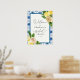 Välkommen gäster till din bröllopsfest med denna vackra affisch, med en blå mosaikram med vattenfärggrönska och citroner. Lägg till brudens namn och datum för festen med hjälp av de angivna fälten.