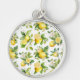 Lemon Mönster, Lemon Flowers, Löv, Citrus Rund Silverfärgad Nyckelring