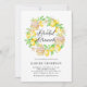 Citrontemat möhippa brunch-inbjudan med vattenfärgsinandning av citroner, citronblommar och citronmuffinsar med motsvarande mönster. Anpassa genom att lägga till namn, datum och annan information. Den här citronbrunchinbjudan är perfekt till sommar och tropisk brunch.