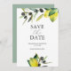 Meddela din förlovning med det här moderna Spara datumkortet. Den har en blandning av klassisk och skripttypografi med en kanter av min ursprungliga gult citroner och olivcitroner på en skarp vit bakgrund. Kortet återgår till en kompletterande grönt färg. Färger kan anpassas för att passa ditt bröllop färg-program. Använda mallen fält att anpassa med ditt namn och bröllop-datum. Välj mellan en mängd lagrar med kvalitetskort. Min favorit för detta känns vit eftersom det ser ut som vattenfärgen papper. En rustik men ändå elegant-design för bröllop och förlovning-meddelanden. Om du vill se matchande bröllop-stationers svit går du till www.zazzle.com/dotellabelle Watercolor art and design by Victoria Grigaliunas