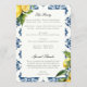 Lemon Citrus Positano italiano Bröllop Ceremony Program