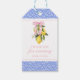 Lemon och Rosa Bow preppy 1st-födelsedagsfavorittaggar med blue mönster.