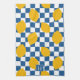 Lemon Rustic Farmhouse Blue White Check Monogram Kökshandduk